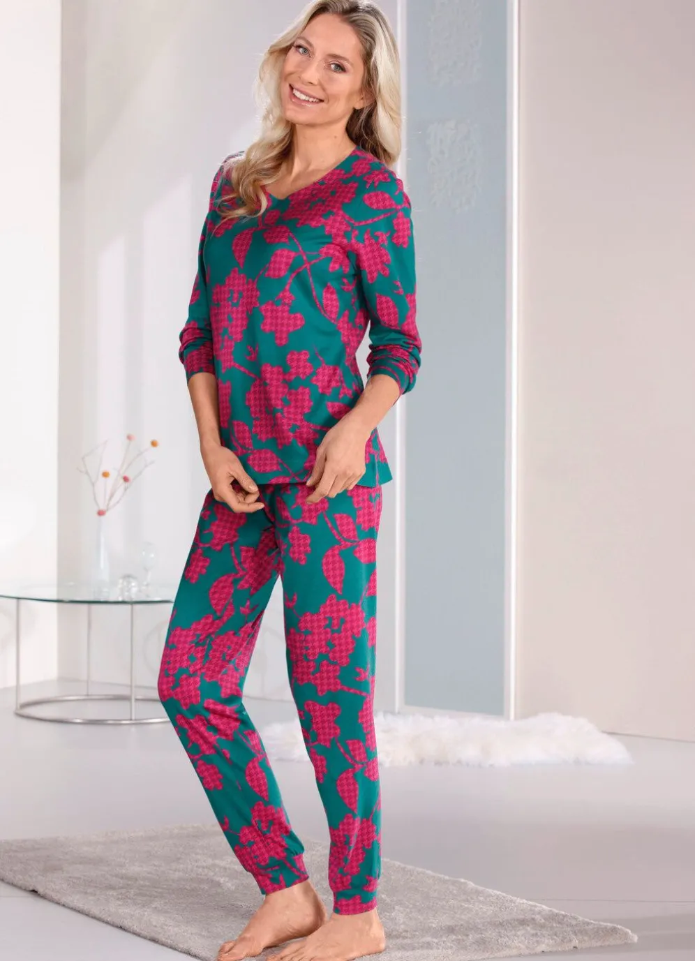 Schlafanzug von „pastunette“ in Petrol-Pink mit Bündchenabschlüssen!