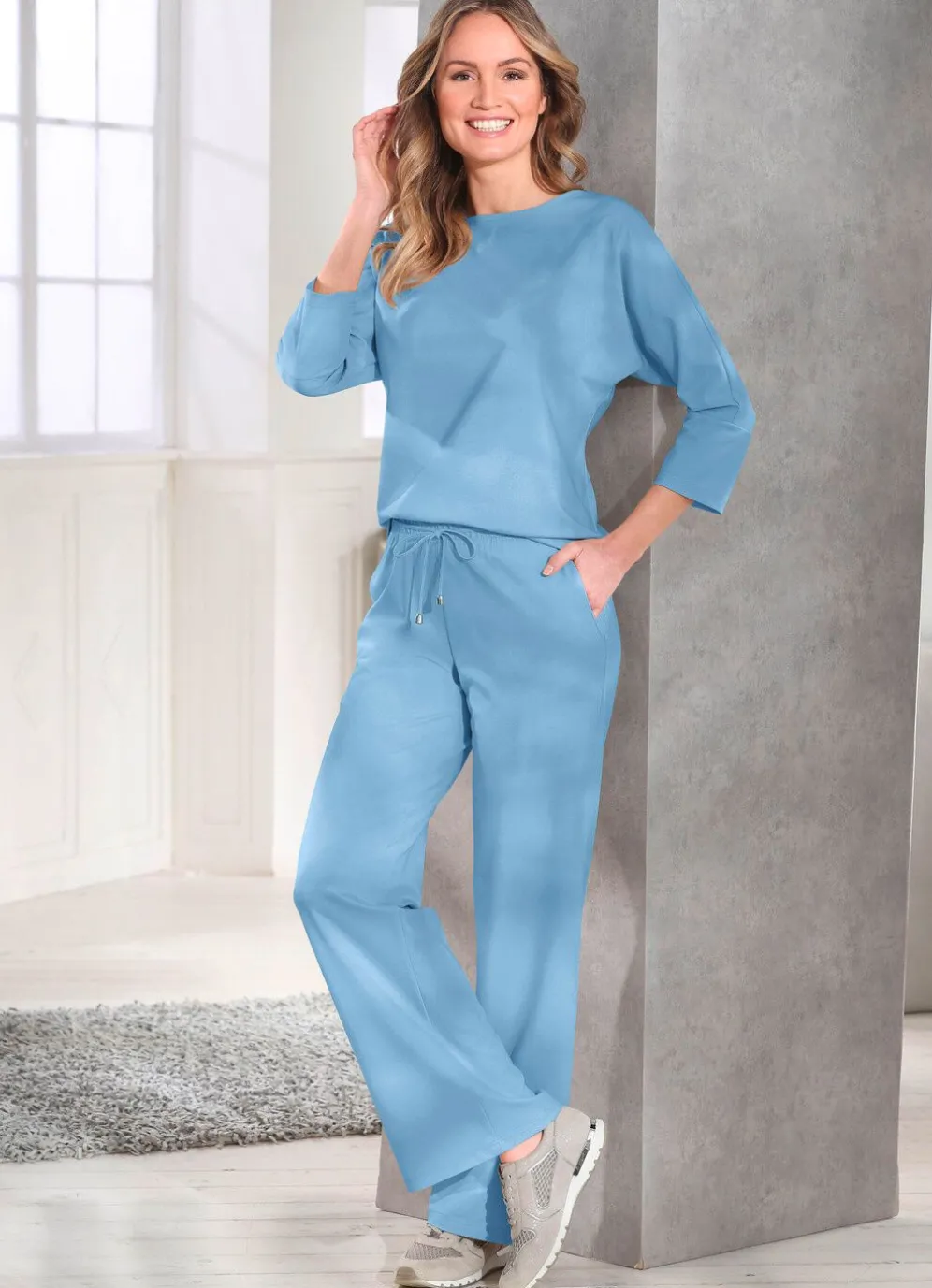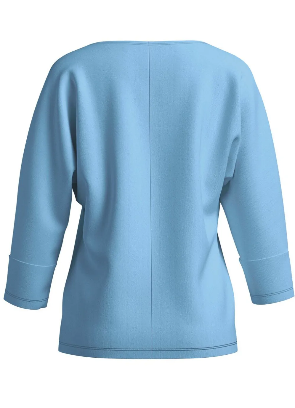 Faszinierendes Shirt mit rundem Halsausschnitt, 3/4-lange Fledermausärmel mit Blende an den Abschlüssen sowie Teilungsnaht im Rückteil. Länge ca. 65 cm, ab Gr. 46 ca. 68 cm.