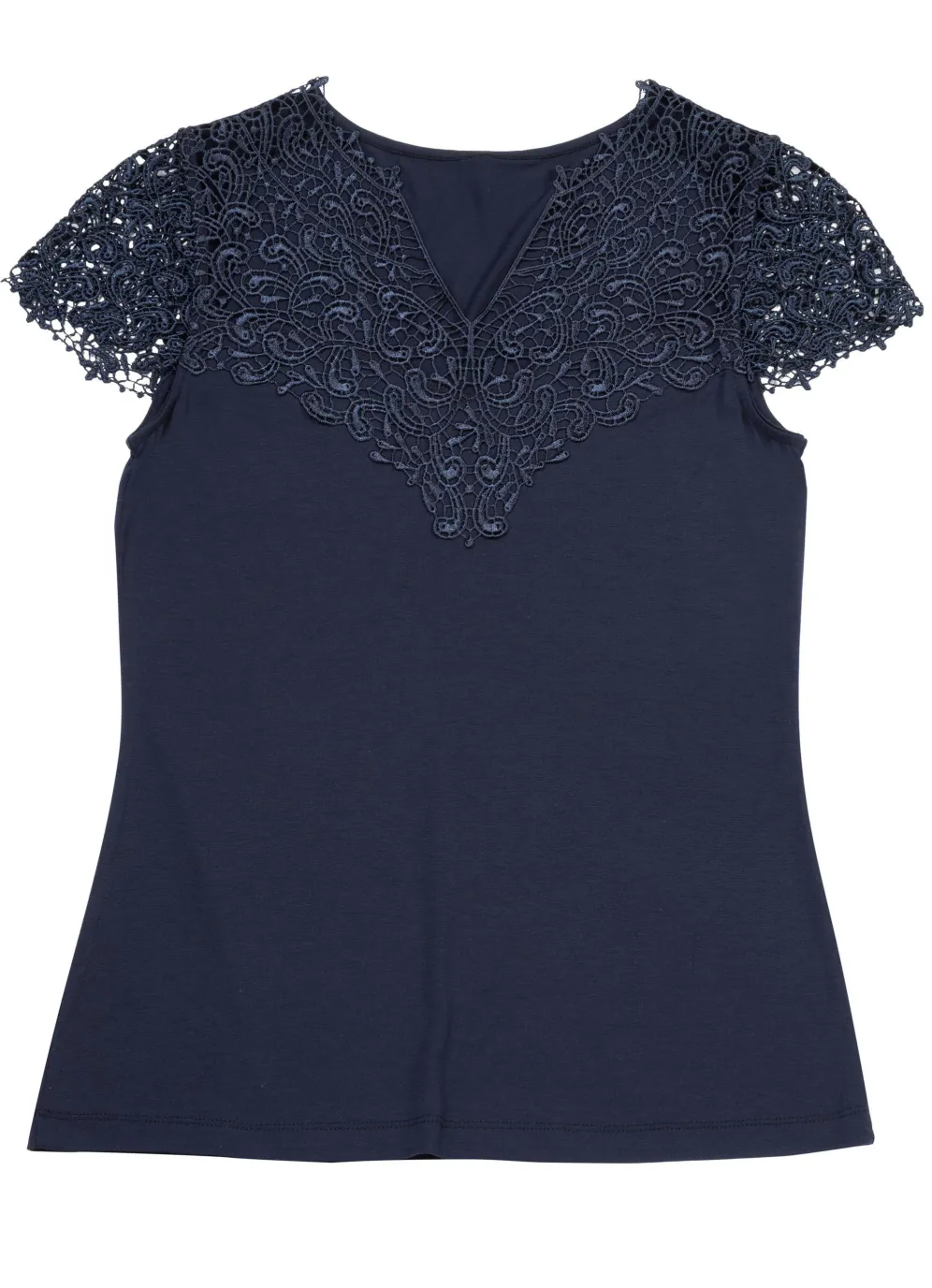 Shirt von Tizia mit Spitzenverarbeitung im Vorderteil.