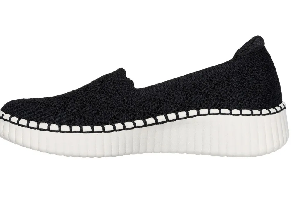 Slipper aus dehnbarem Strick-Material: gepolsterte Decksohle, superleichte EVA-Sohle sowie 20 mm Keilabsatz
