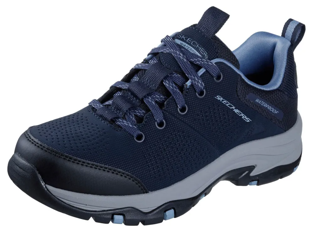 Wetterfeste Schnürschuhe in Dunkelblau aus Mesh und Synthetik: mit Klimamembrane ausgestattet, Textilfutter, gepolsterte Decksohle, Gummi-Profilsohle sowie 20 mm Keilabsatz