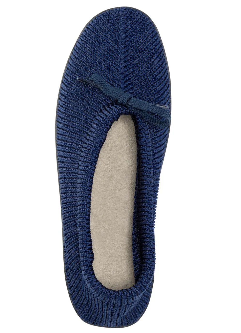 Luftiger Slipper aus elastischem Strickmaterial mit Schnürung: herausnehmbares Fußbett mit Baumwollfrottee-Bezug, leichte PU-Profilsohle, 10 mm Keilabsatz