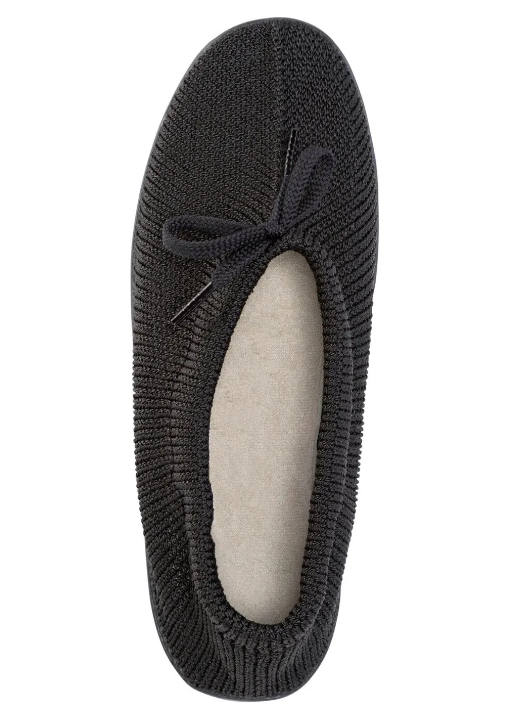 Luftiger Slipper aus elastischem Strickmaterial mit Schnürung: herausnehmbares Fußbett mit Baumwollfrottee-Bezug, leichte PU-Profilsohle, 10 mm Keilabsatz
