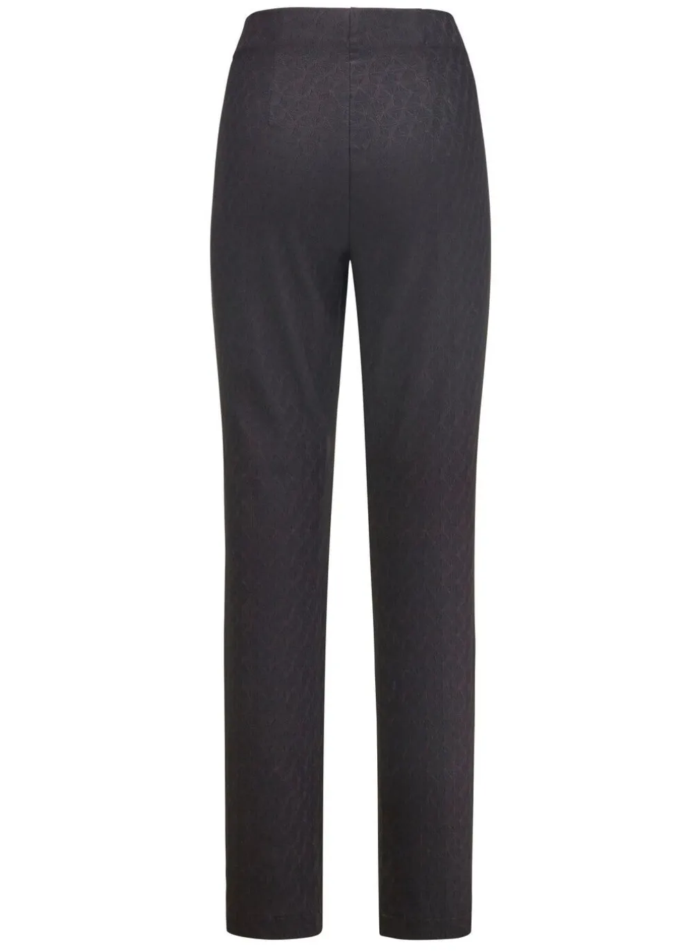 Die Qualität: querelastischer Struktur-Jaquard aus 76% Viskose, 21% Polyamid und 3% Elasthan