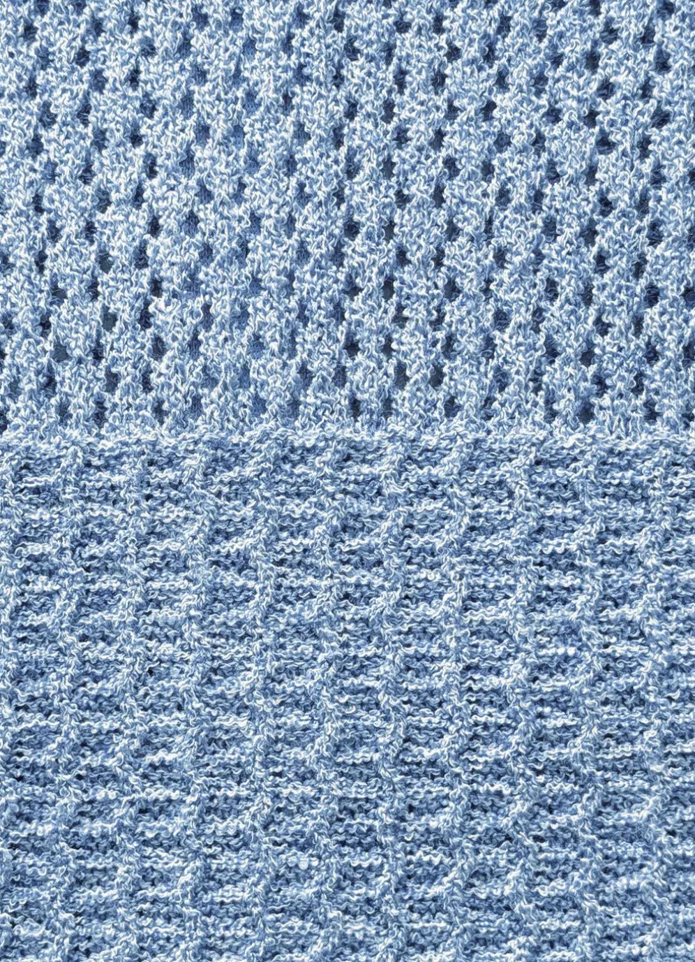 Außergewöhnliche Strickjacke mit Stehbund, durchgehendem Reißverschluss, kurzen Ärmeln, gerippten Abschlüssen, aufwendigem Ajour- und Strukturmustermix sowie schönen Melange-Effekten allover.
