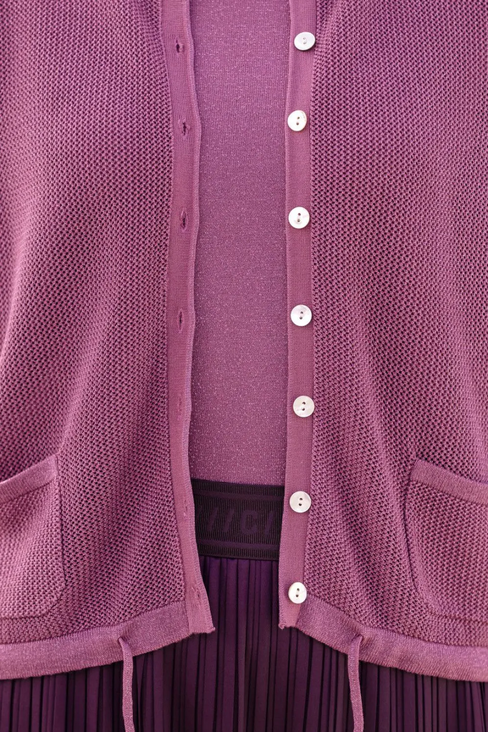 Tolle Strickjacke von B/ANCA mit rundem Halsausschnitt, Knopfleiste, langen Ärmeln, zwei aufgesetzten Taschen im Vorderteil sowie Bindebänder zur individuellen Weitenregulierung am Saumabschluss.