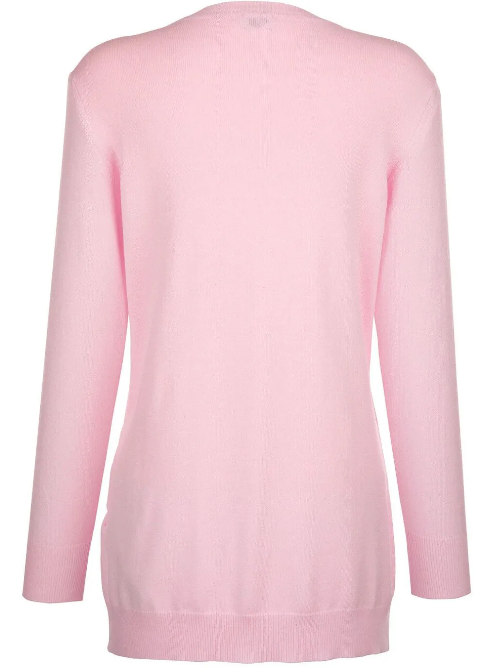 Durchgeknöpfte Strickjacke: V-Ausschnitt, weich fließend, lange Ärmel, feine Bündchen allover, 2 aufgesetzte Taschen.