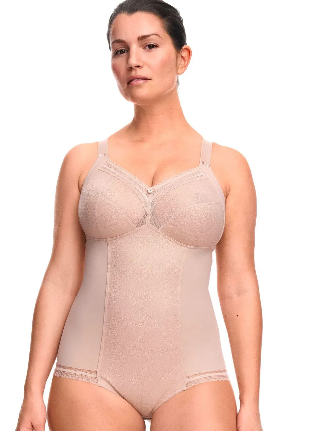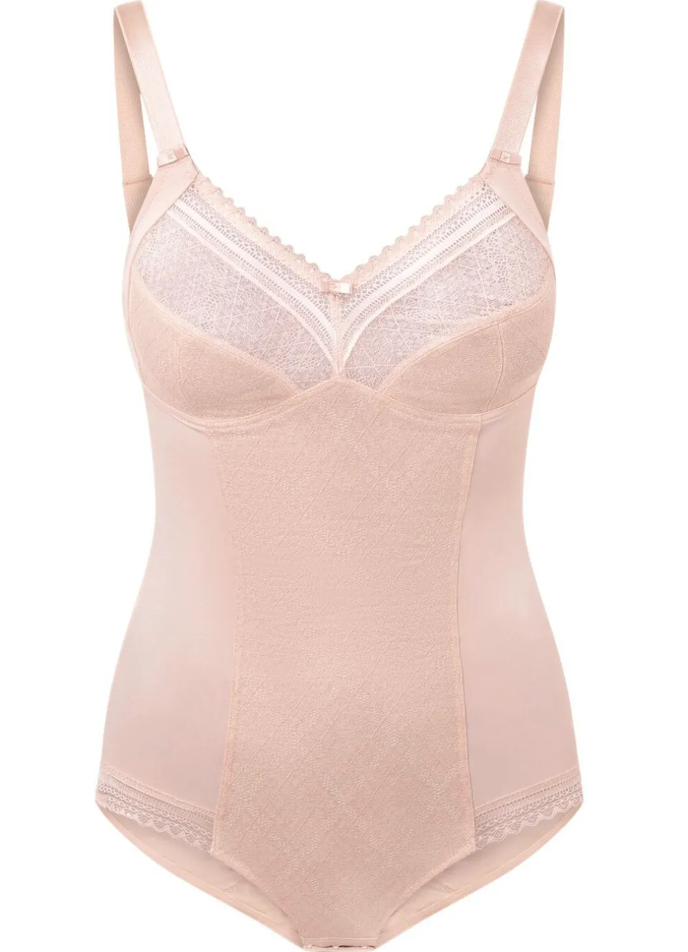 Attraktives Hosenkorselett von „Susa“, mit Elastikspitze und Verstärkung im Vorderteil, unterlegten Cups, elastischen Spitzenbändern an den Beinabschlüssen, verstellbaren Stretchträgern sowie Hakenverschluss und Baumwolleinlage im Schritt.
