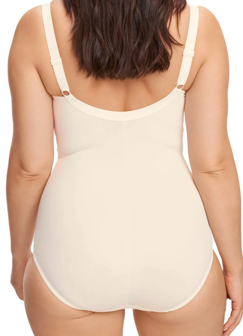 Sanft formendes Hosenkorselett von „Susa“, mit Elastikspitze im Vorderteil, unterlegten Untercups, Verstärkung vorne, verstellbaren Stretchträgern sowie Hakenverschluss und Baumwolleinlage im Schritt.
