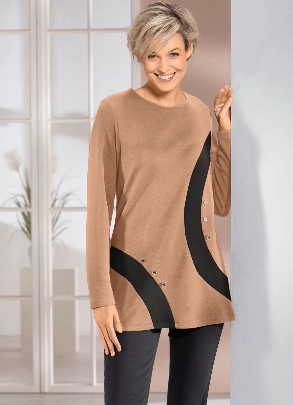 In bester Qualität und Verarbeitung zeigt sich dieses tragangenehme Sweatshirt mit kontrastfarbenen Einsätzen und Zierknöpfen.