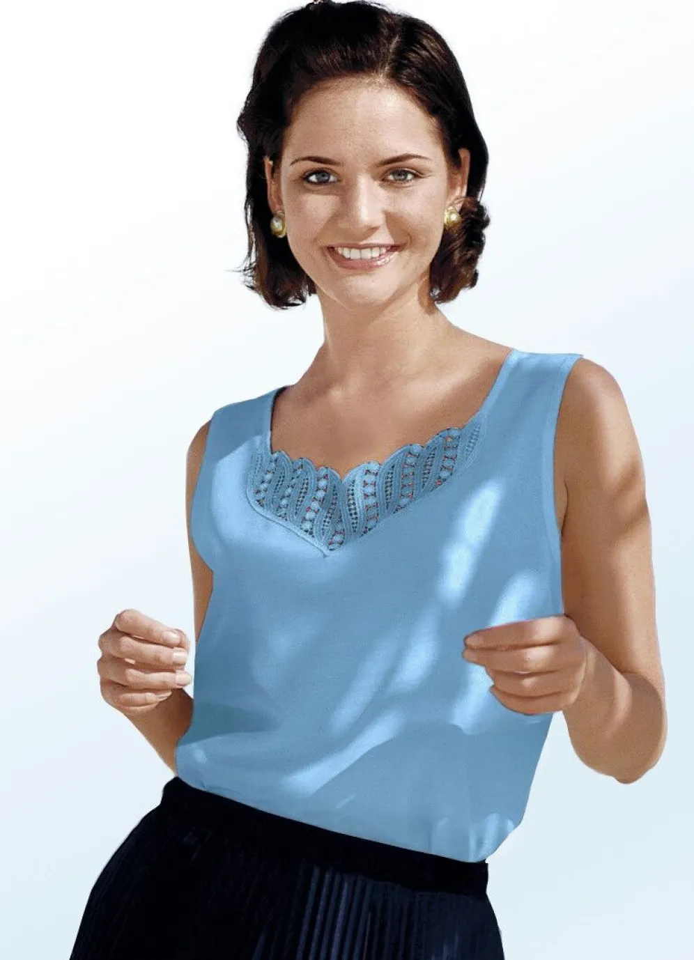 Edles Top: echte Plauener Spitze am Halsausschnitt, Seitenschlitze.
