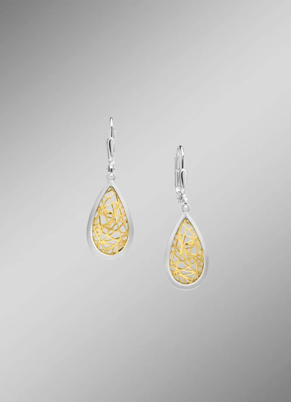 Zeitlose Schönheit mit raffinierter Eleganz – diese tropfenförmigen Ohrringe aus Silber 925/- fein bezaubern mit ihrem kunstvollen Bicolor-Design und filigranen Durchbruchmustern. Mit einer Gesamtlänge von 34 mm und praktischer Brisur-Verschlusstechnik bieten sie perfekten Tragekomfort.