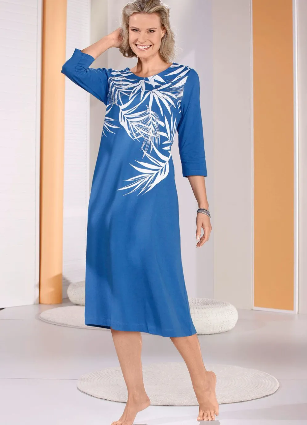Wadenlanges „Laurina”-Nachthemd in Royalblau-Weiß, mit platziertem Druck im Vorderteil sowie