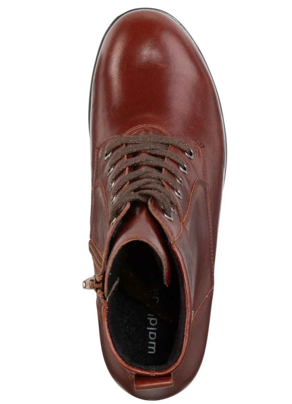 Stiefeletten aus Nappaleder, mit Schnürung und praktischem Innenreißverschluss: Weite H, mit Klimamembrane ausgestattet, Textilfutter, herausnehmbares Filzfußbett, leichte TR-Luftpolster-Riffelsohle sowie 35 mm Absatz. Schafthöhe ca. 12 cm