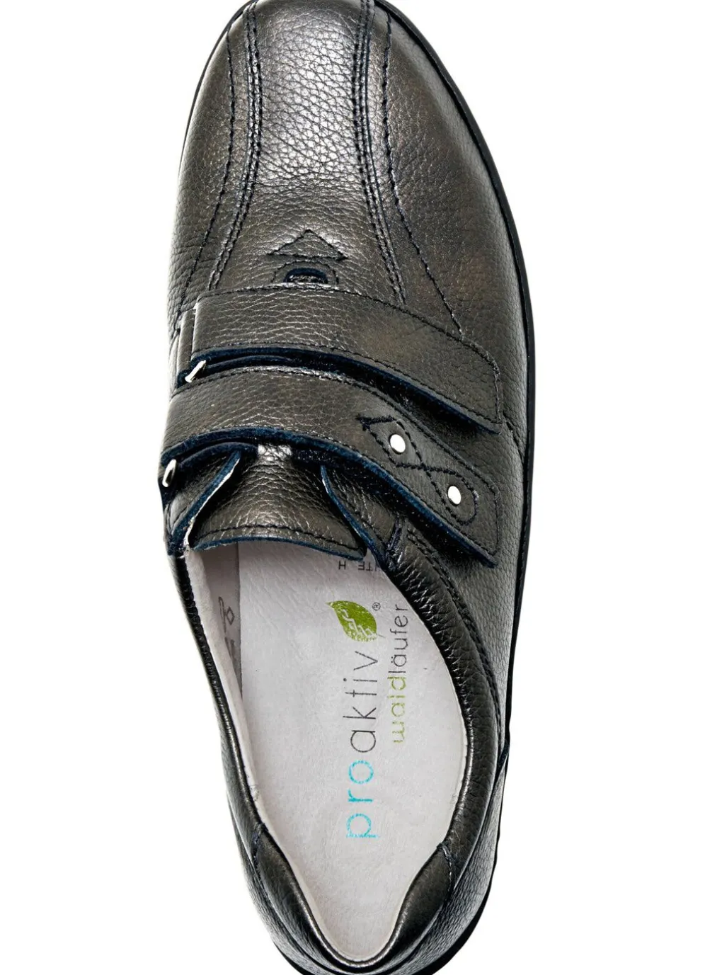 Slipper aus Rind-Nappaleder, in Weiß-Bunt aus floral bedrucktem Synthetikmaterial, in Burgund aus Rind-Knautschlackleder: Weite H, zwei verstellbare Klettspangen, ledergefüttertes Quartier, herausnehmbares Leder-Massagefußbett, leichte PU-Handnaht-Profilsohle sowie 20 mm Keilabsatz