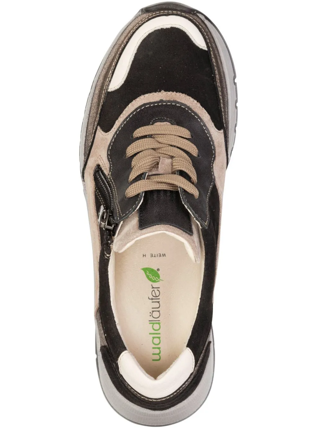 Sneaker aus Leder in interessantem Material-Mix, teilweise mit Textil-Einsatz und schimmernden Akzenten: Weite H, Schnürung, Seitenreißverschluss, ledergefüttertes Quartier, herausnehmbares Lederfußbett, leichte Microlight-Luftpolstersohle, 20 mm Keilabsatz
