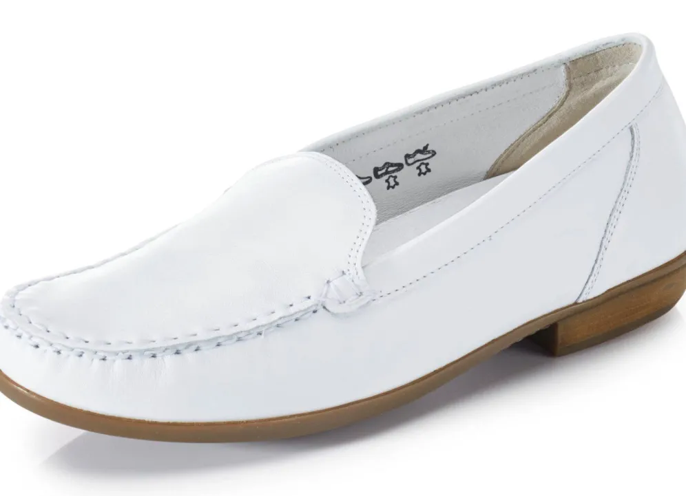 Mokassin-Slipper aus edlem Rind-Nappaleder: in Weite H, Lederfutter, herausnehmbares Lederfußbett, leichte TPS-Laufsohle sowie 15 mm Absatz