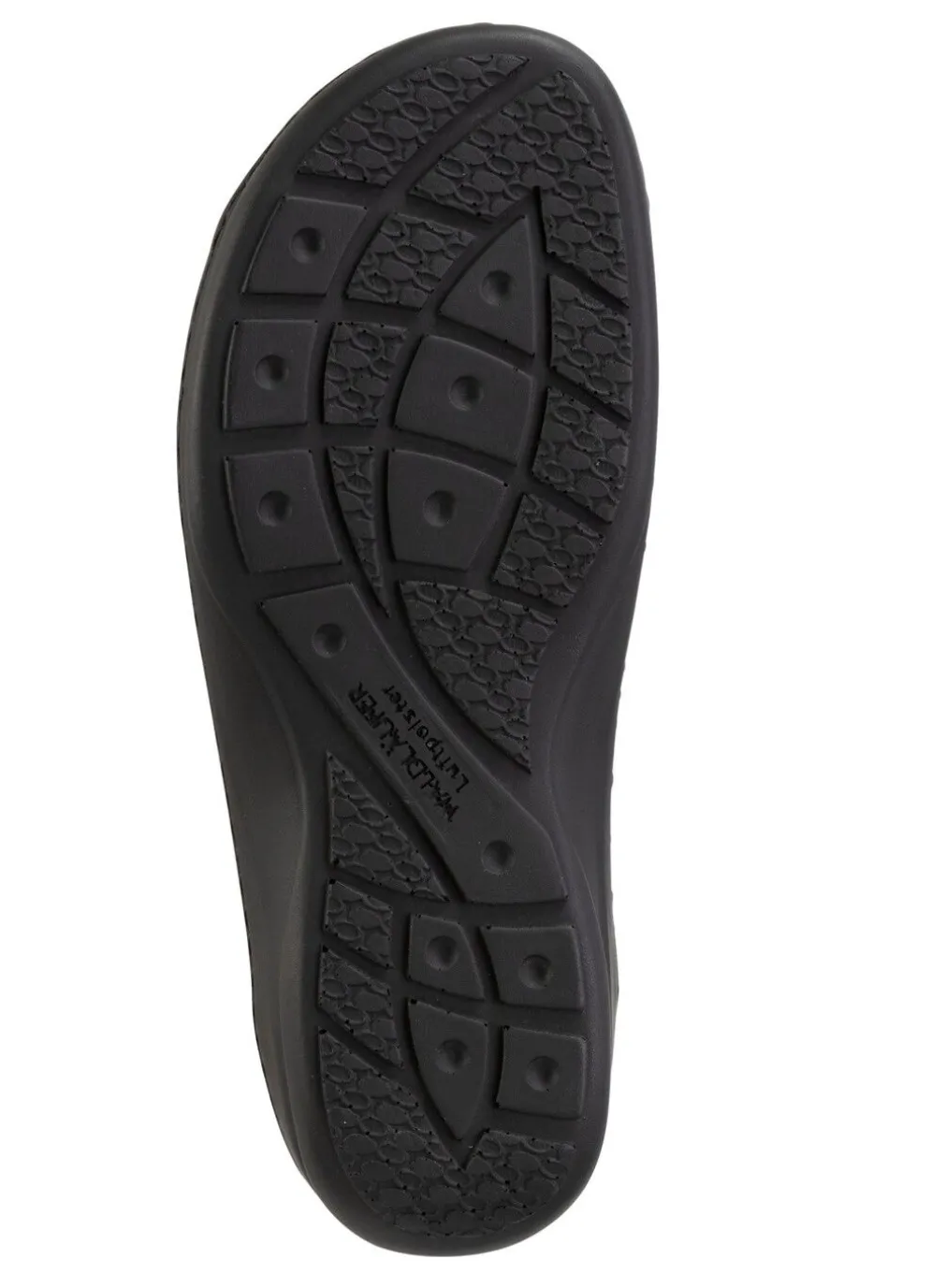 Hochwertige Pantolette aus Nubuk- und Lackleder, in Antikgold aus Nappaleder: Weite H, zwei Klettspangen, Metallschmuck mit Glitzersteinchen, Lederfutter, herausnehmbares Lederfußbett, leichte PU-Luftpolster-Profilsohle sowie 30 mm Keilabsatz