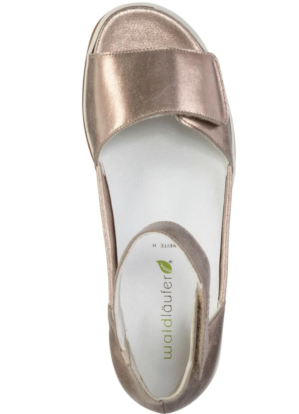 Sandale aus fein genarbtem Nappaleder, in Schwarz aus Nubukleder, mit zwei verstellbaren Klettspangen: Weite H, seitlich eingesetzter Gummizug, Lederfutter, herausnehmbares Lederfußbett, leichte TR-Luftpolster-Profilsohle sowie 15 mm Keilabsatz