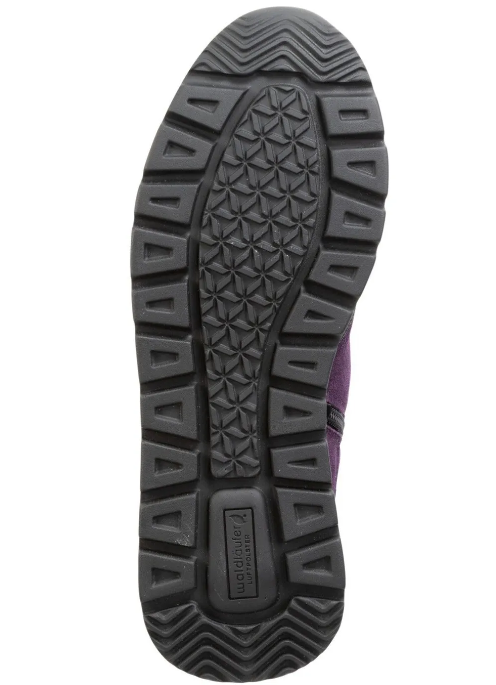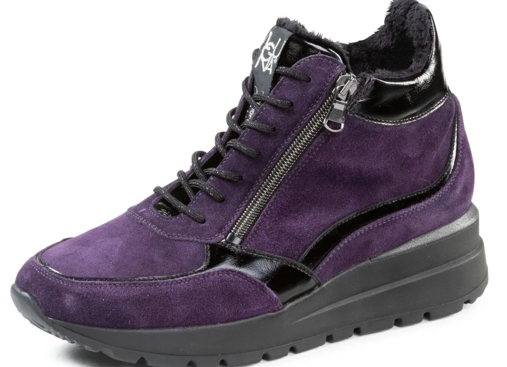 Schnür-Bootie aus weichem Veloursleder, in Dunkel-Türkis aus Nubukleder, mit Besätzen aus Lackleder: Weite H, zwei seitliche Reißverschlüsse, Warmfutter aus 100% Polyester, herausnehmbares Filz-Fußbett, PVC-Luftpolster-Profilsohle sowie 25 mm Keilabsatz. Schafthöhe ca. 9 cm