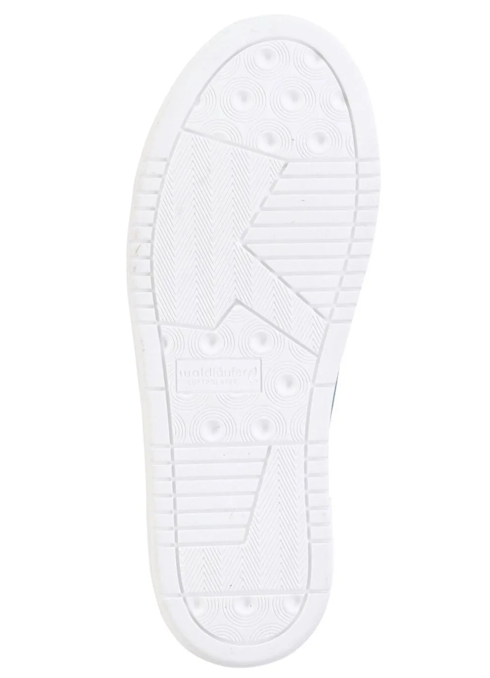 Trendiger Schnür-Sneaker aus verspielt bedrucktem Textilmaterial, bei Weiß-Multicolor mit Nappaleder, bei Jeans mit Nubukleder kombiniert: Weite H, ledergefüttertes Quartier, herausnehmbares Lederfußbett, leichte PU-Luftpolstersohle sowie 10 mm Keilabsatz