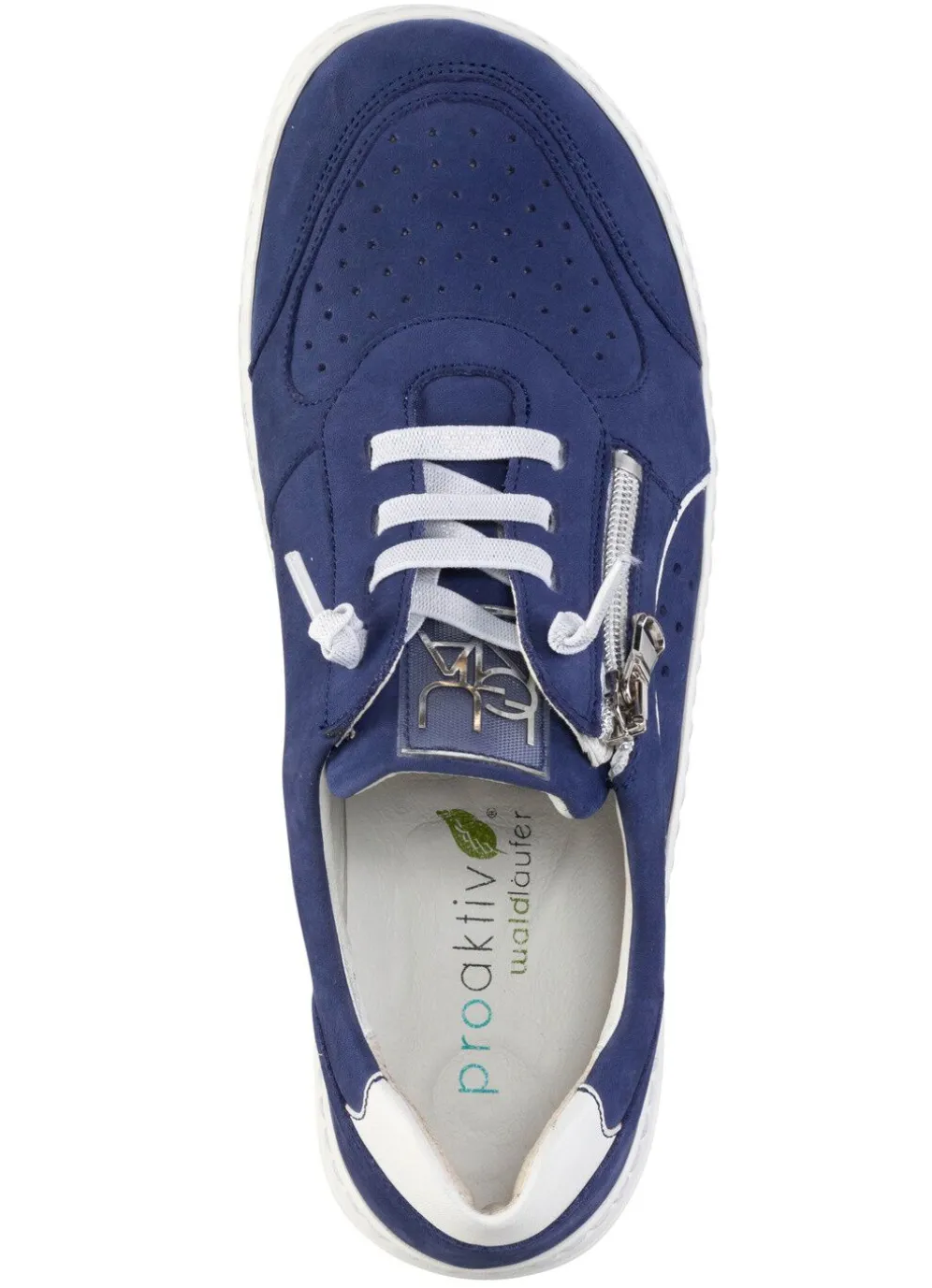Sneaker aus Nubuk- oder Nappaleder, mit Perforation und seitlichem Reißverschluss: Weite K, schimmernde Elastik-Schnürung, ledergefüttertes Quartier, herausnehmbares Lederfußbett, leichte PU-Laufsohle sowie 15 mm Keilabsatz