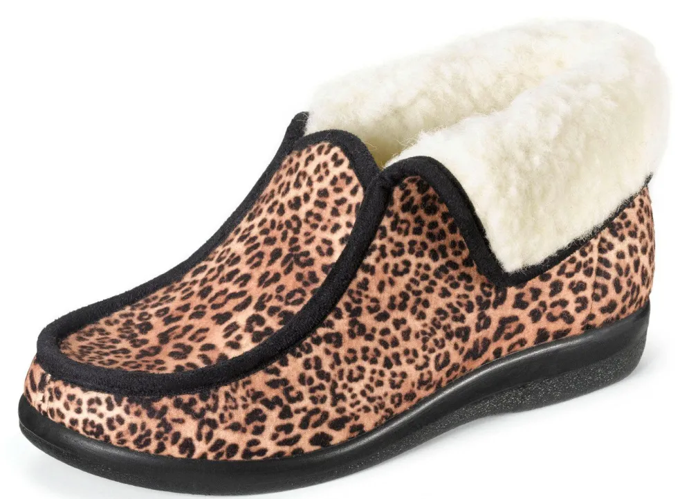 Pfiffige Hausschuhe aus weichem Textilmaterial: in Weite H, Kragen und Warmfutter sowie Fußbettbezug aus reiner Wolle, superleichte PU-Laufsohle sowie 15 mm Keilabsatz