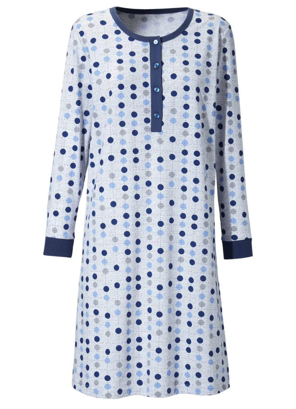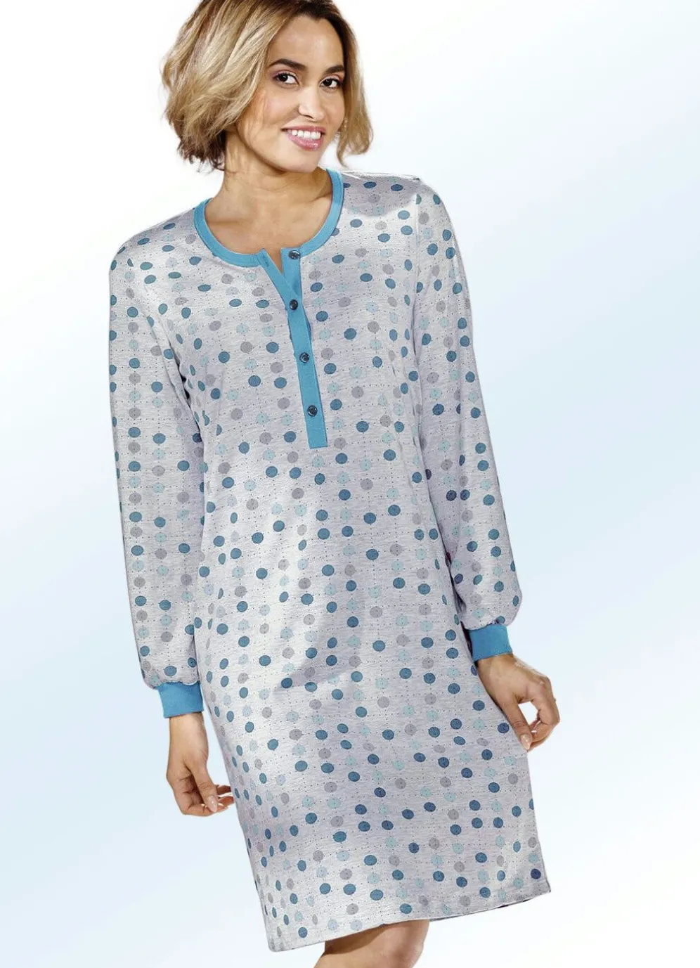 Knielanges Nachthemd im günstigen Zweierpack! Das Modell ist mit Kontrasteinfassungen, langer Knopfleiste sowie uni Bündchen an den langen Ärmeln ausgestattet.