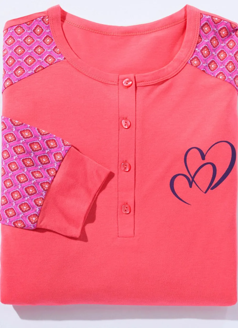 Hübsches, knielanges Nachthemd im vorteilhaften Zweierpack mit Knopfleiste, Schultereinsätzen, platziertem Druck, Bündchenabschlüssen an den langen Ärmeln sowie seitlichem Schlitz am Saum.