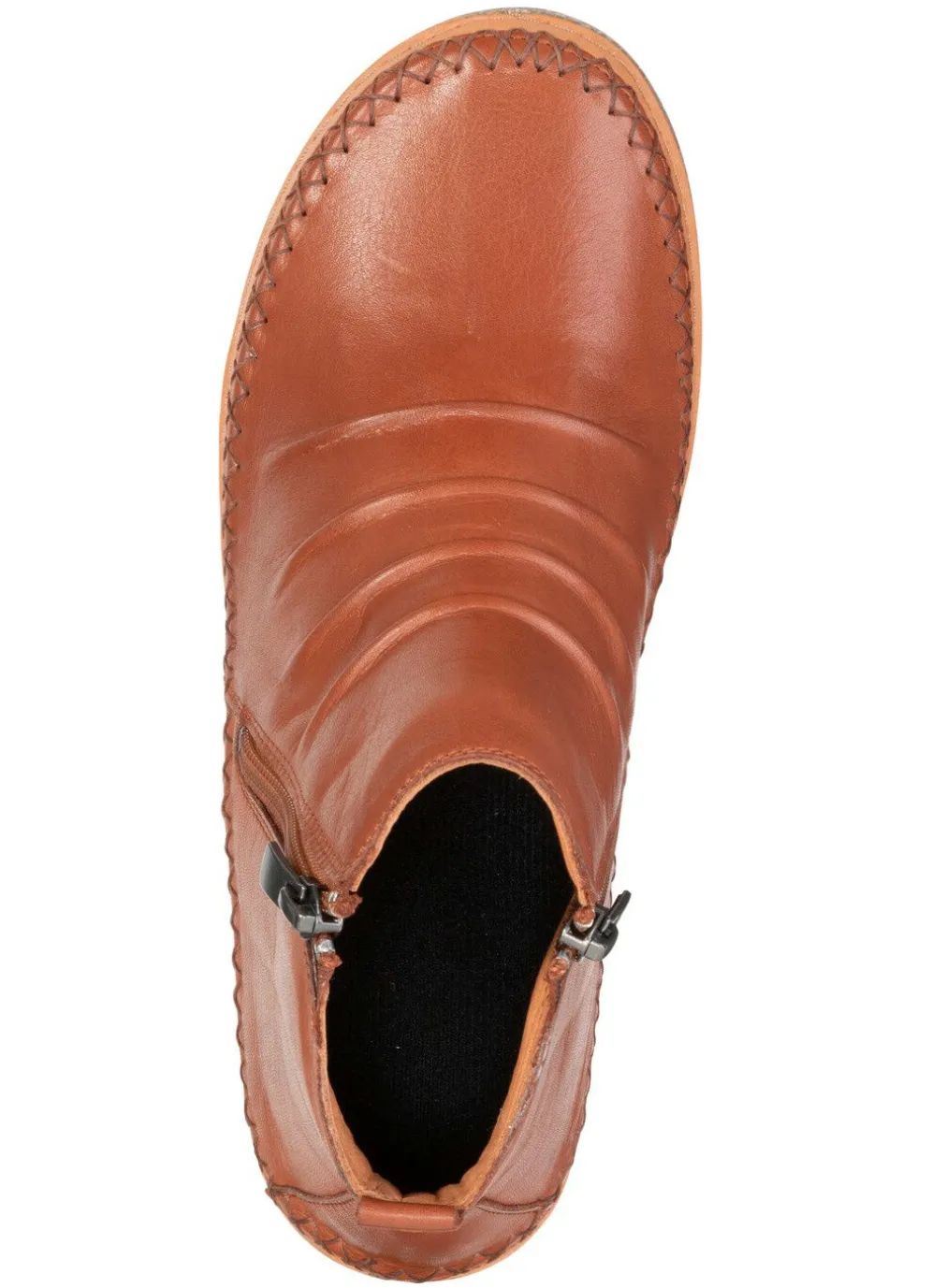 Boots aus Rind-Nappaleder, mit flotter Raffung: zwei Seitenreißverschlüsse, Textilfutter, herausnehmbares Fußbett, superleichte TR-Laufsohle sowie 15 mm Keilabsatz. Schafthöhe ca. 9 cm