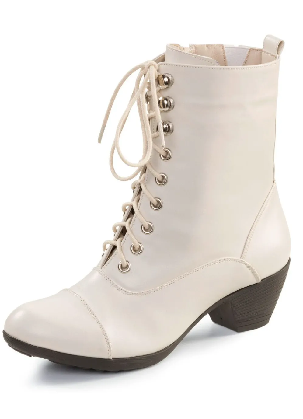 Stiefeletten aus Synthetikmaterial, mit Schnürung, Innenreißverschluss und seitlichem Gummizug: Warmfutter und warme Decksohle aus 100% Polyester, leichte TR-Profilsohle sowie 45 mm Absatz. Schafthöhe ca. 18 cm