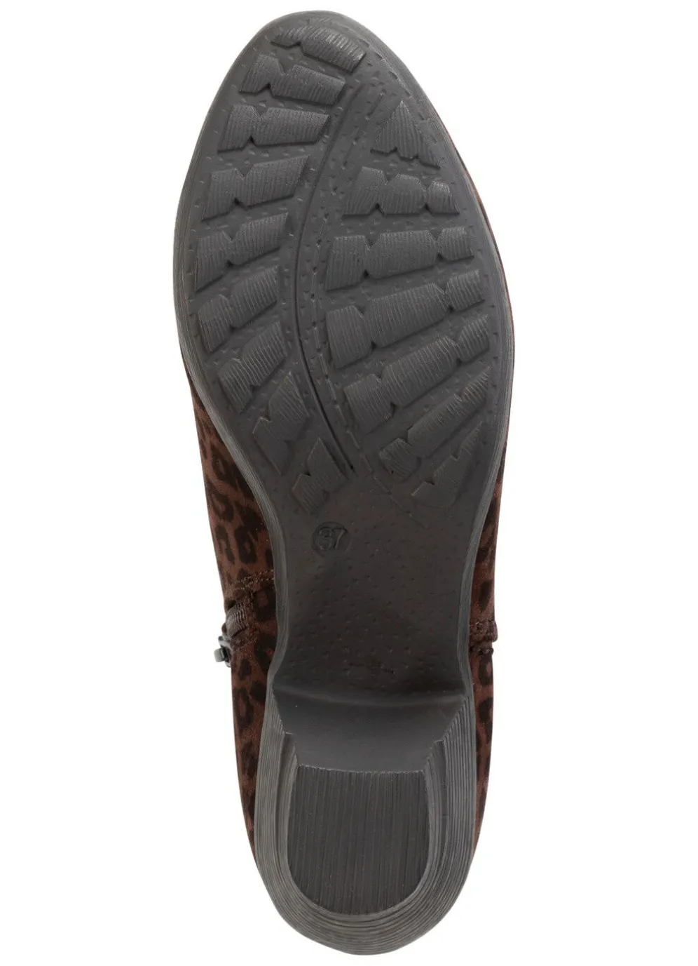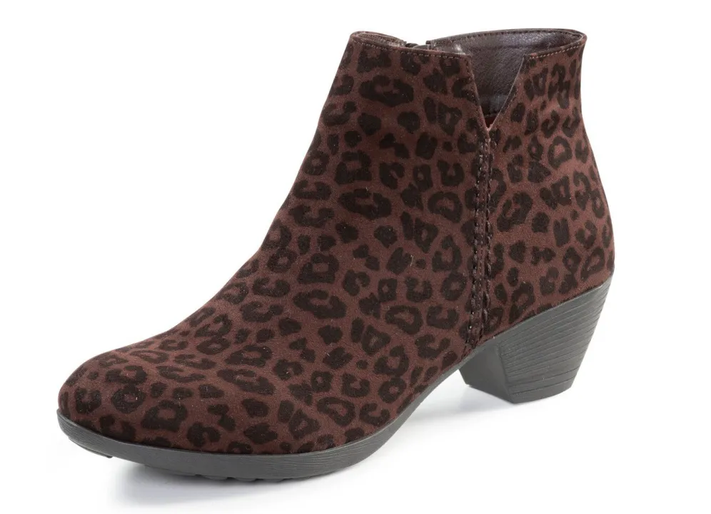 Stiefeletten aus Veloursmaterial in Leo-Optik, in Grau aus Synthetik: seitliche Ziernähte, Innenreißverschluss, Textilfutter, Lederdecksohle, leichte TR-Profilsohle, 45 mm Absatz. Schafthöhe ca. 11 cm