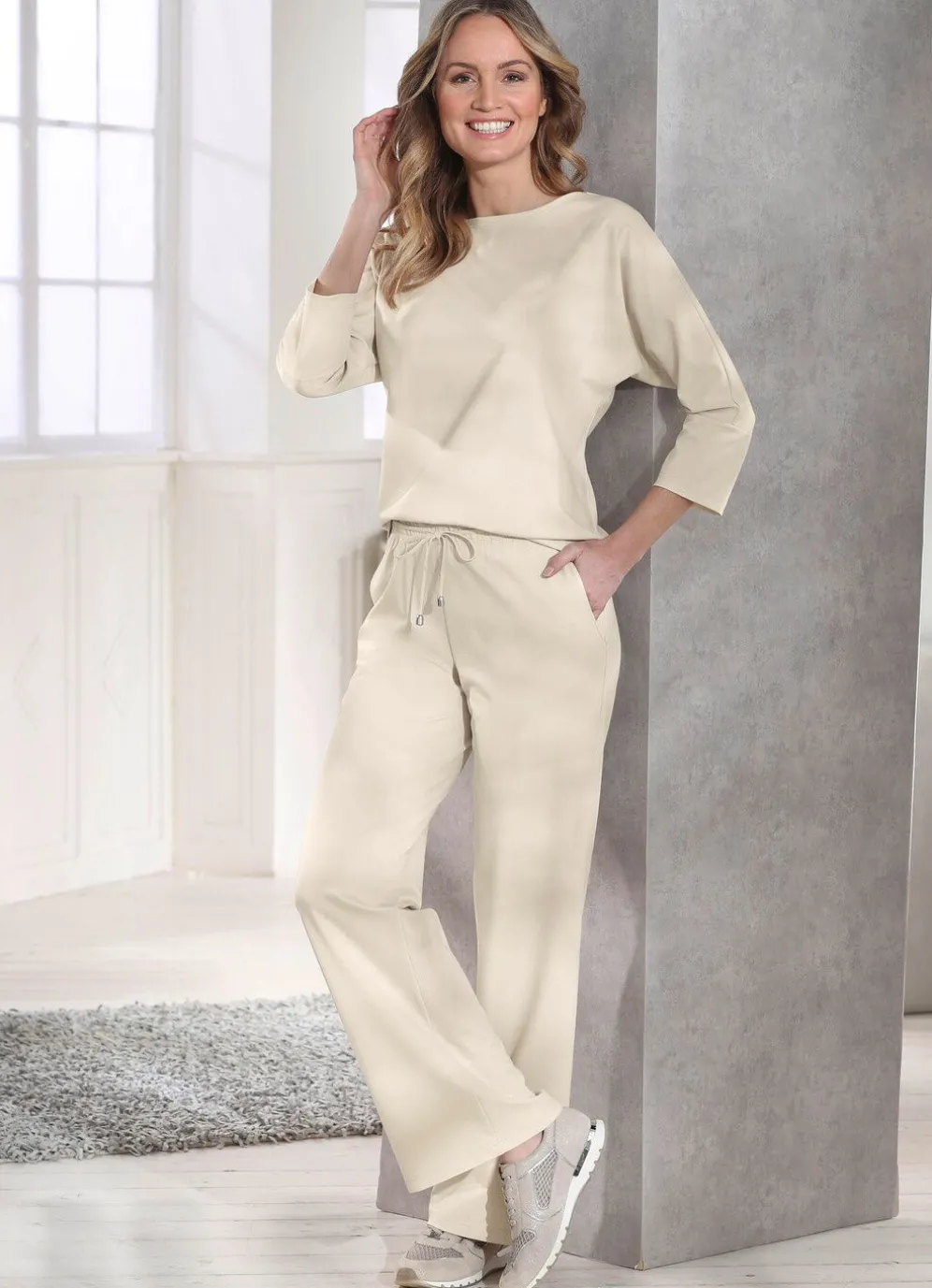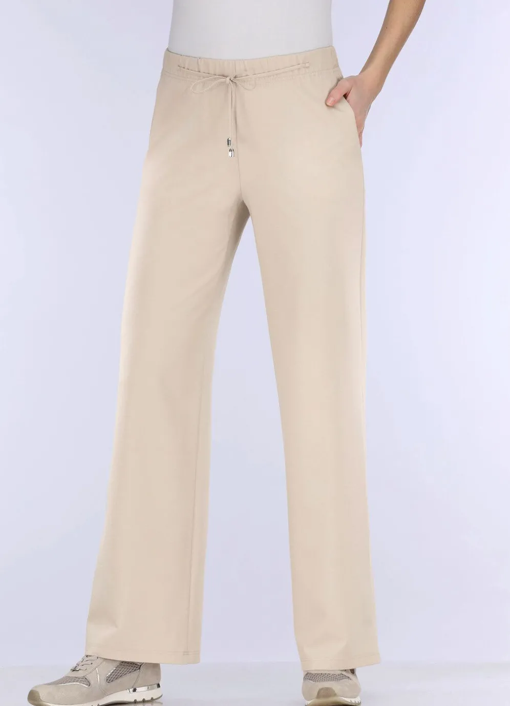 Angesagte Hose in modischer Weite und bequemer Schlupfform, mit Dehnbund rundum sowie Zierbindeband vorne am Bund und Seitentaschen. Innenbeinlänge ca. 78 cm, Fußweite ab 54 cm.
