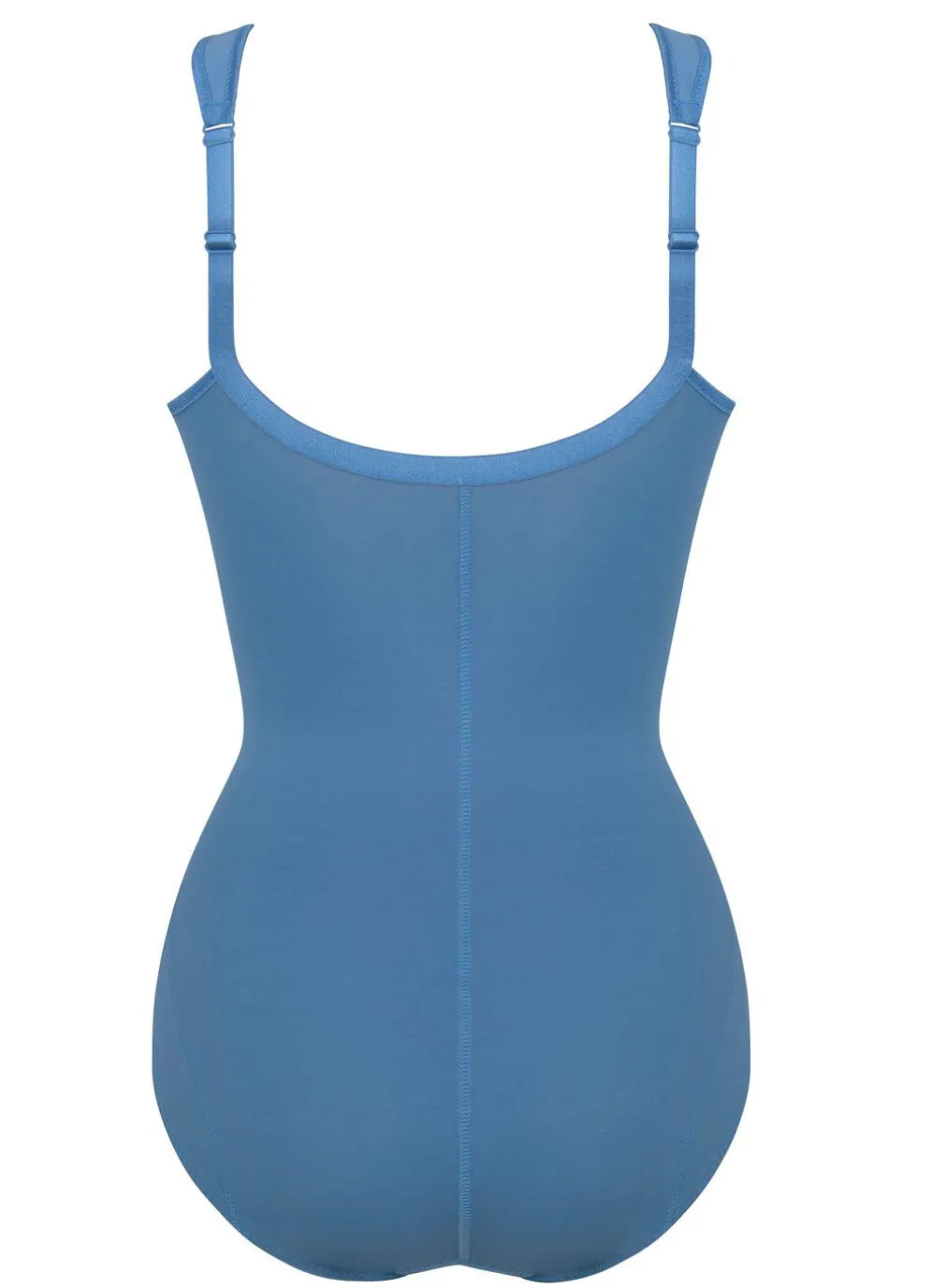 Hosenkorselett von „Anita“, mit seitlicher, stützender Blende in den Cups, transparenten Tülleinsätzen am Dekolleté, Verstärkung in der Bauchpartie, breiten, im Schulterbereich gepolsterten, verstellbaren Stretchträgern sowie Hakenverschluss und Baumwolleinlage im Schritt.