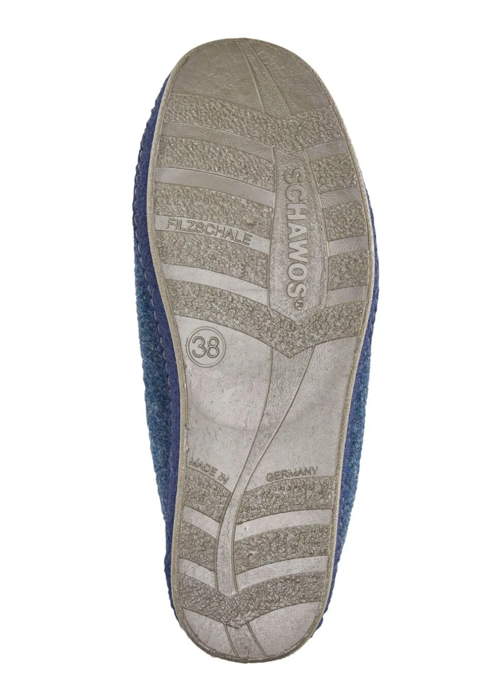 Atmungsaktive Hausschuhe aus Textil, mit verstellbarem Klettverschluss: Warmfutter und Fußbettbezug aus 100% Schurwolle, Fersenluftpolster, Filzschalensohle, TR-Laufsohle sowie 25 mm Keilabsatz