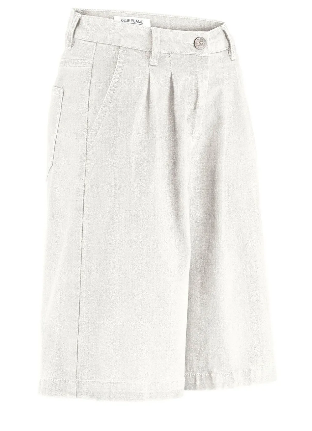 Attraktive Bermudas: elastischer Formbund, Gürtelschlaufen, Knopf- und Reißverschluss, Bundfalten, Seitentaschen, aufgesetzte Gesäßtaschen sowie figurformende Passe im Rückteil. Innenbeinlänge ca. 30 cm, Fußweite ab 64 cm.