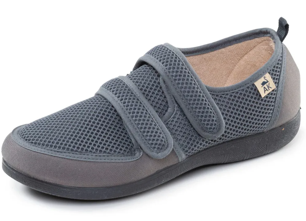 Klettschuhe aus Mesh und Textilmaterial: Weite H, Futter und Decksohle aus gepolstertem Frottee-Textil, Gummi-Laufsohle sowie 15 mm Keilabsatz