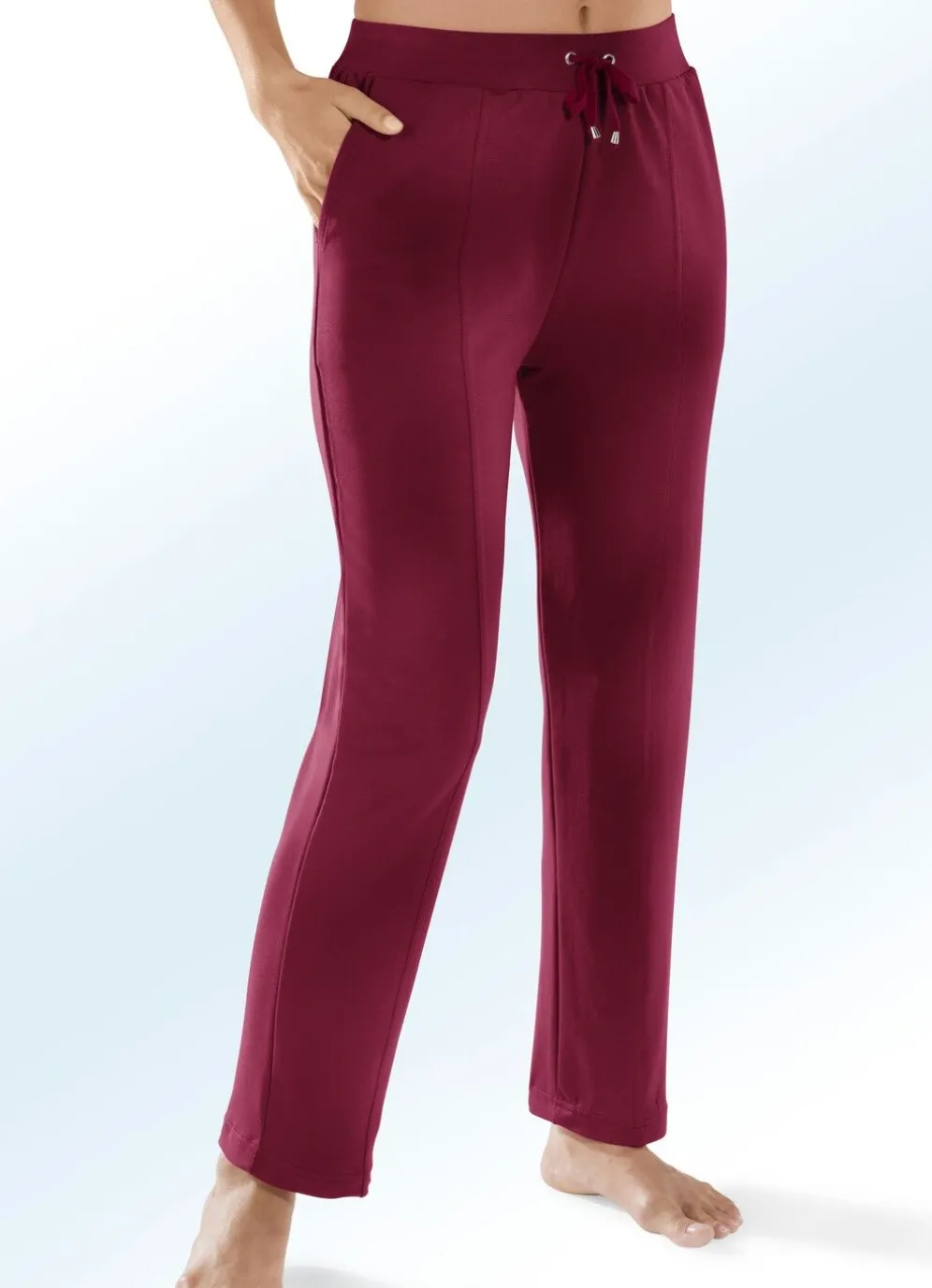 Super bequeme Hose in langer, gerader Form, mit Tunnelzugband im breiten Dehnbund, Biesenzier im Vorderteil, sowie zwei Seitennahttaschen.