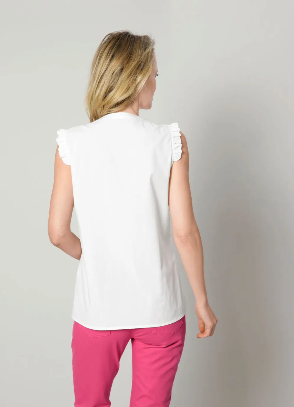 Diese tolle Rüschenbluse von MONA ist der ideale Kombipartner. Sie besitzt einen Rundhalsausschnitt und einen V-Ausschnitt. Darüber hinaus ist sie leicht tailliert geschnitten und hat halblange Ärmel mit Rüschen.