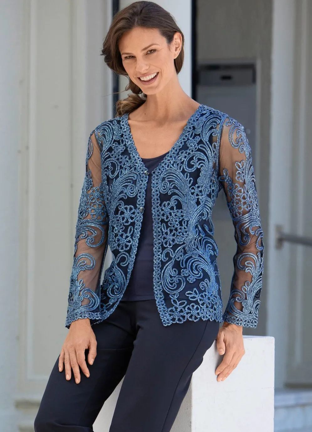 Blusenjacke mit Glanzgarn-Applikation