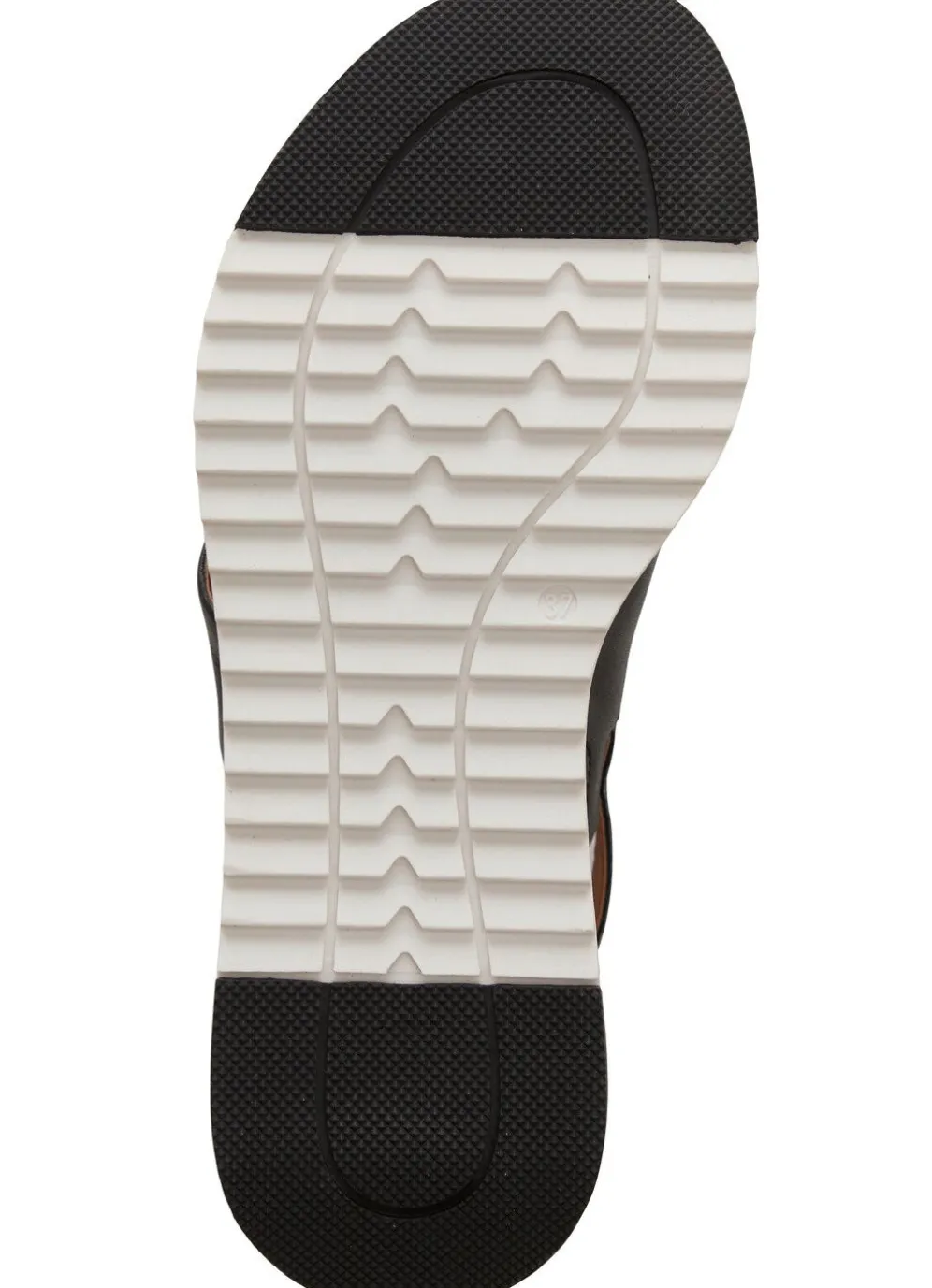 Sandale aus Nappaleder: Weite G, verstellbare Fersenklettspange, seitlicher Gummizug, Futter, gepolsterte Lederdecksohle, leichte TPR-Profilsohle sowie 30 mm Keilabsatz