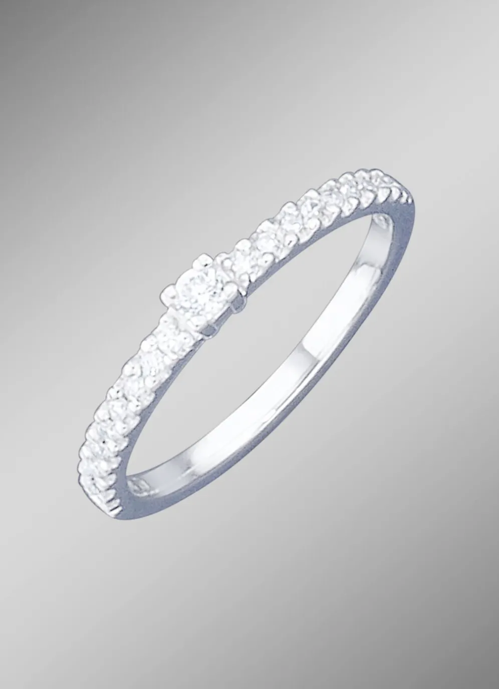 An der 2 mm breiten Schiene sind die Edelsteine in feiner Handarbeit ausgefasst. Durch das filigrane Aussehen lässt sich der Diamantring problemlos zu vielen verschiedenen Anlässen und Looks kombinieren, ohne zu schwer oder aufdringlich zu wirken; und doch gibt er jedem Outfit gekonnt eine besonders elegante Note.