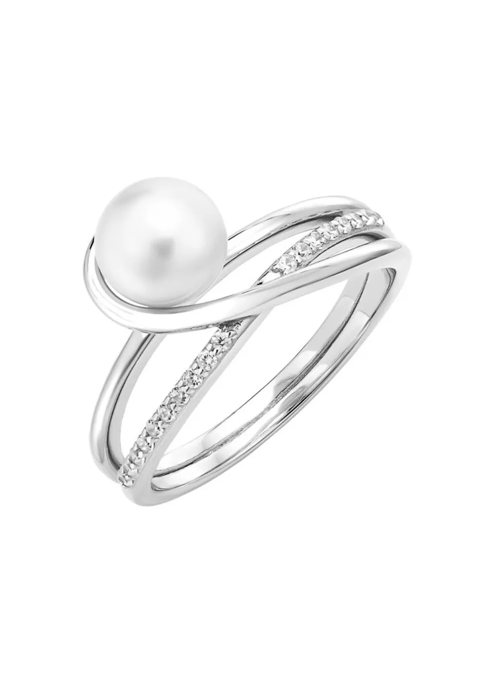 Damenring mit Süßwasser-Zuchtperle und synth. Zirkonia