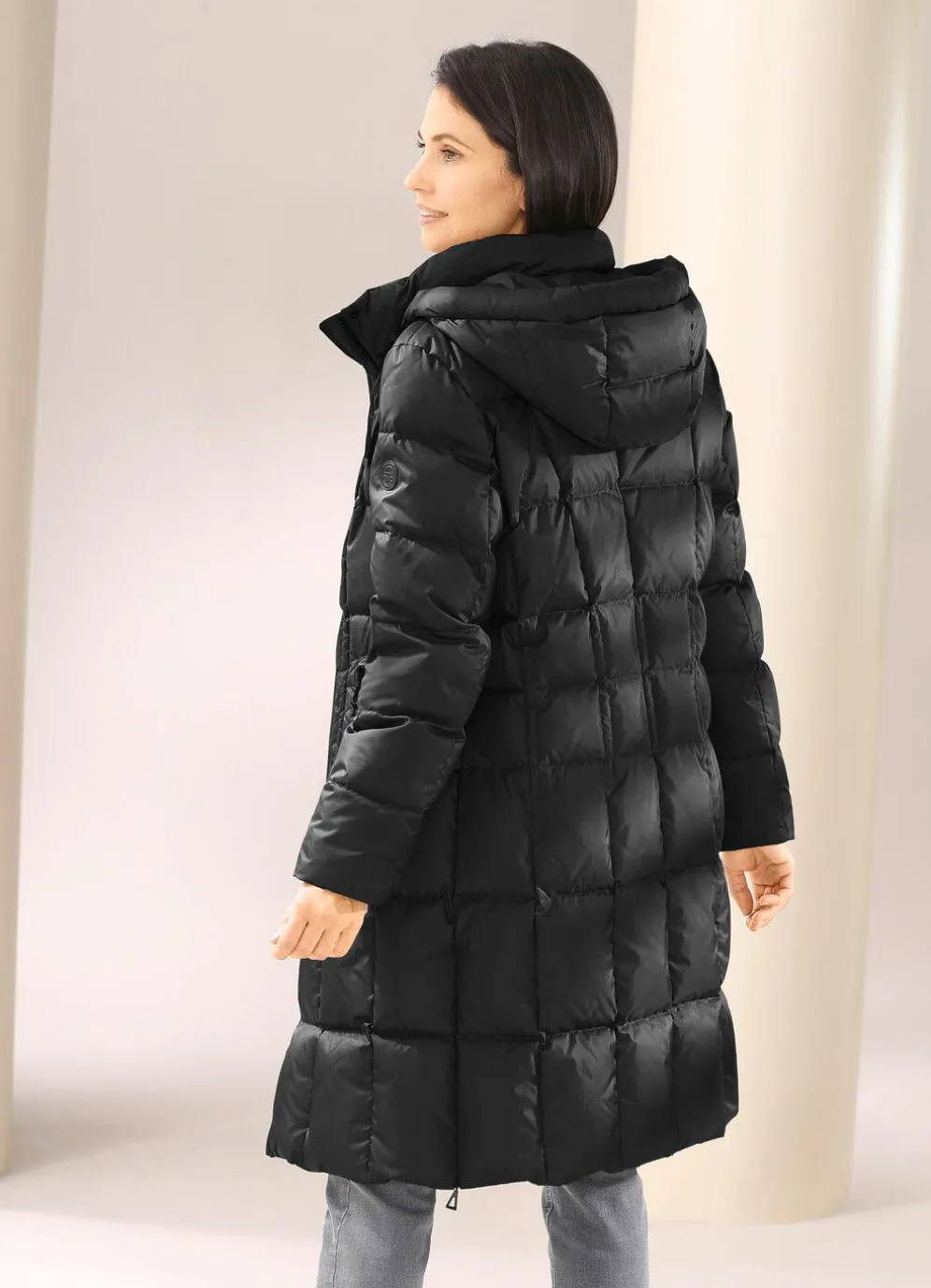 Lassen Sie sich dieses Modell nicht entgehen! Charmanter Daunen-Kurzmantel: abnehmbare Kapuze mit Durchzugsband und Stopper, Stehkragen mit Druckern, Reißverschluss unter der verdeckten Druckerleiste, Reißverschluss an Taschen und Seitenschlitzen, umschlagbare Ärmel sowie eine Innentasche. Länge ca. 98 cm.