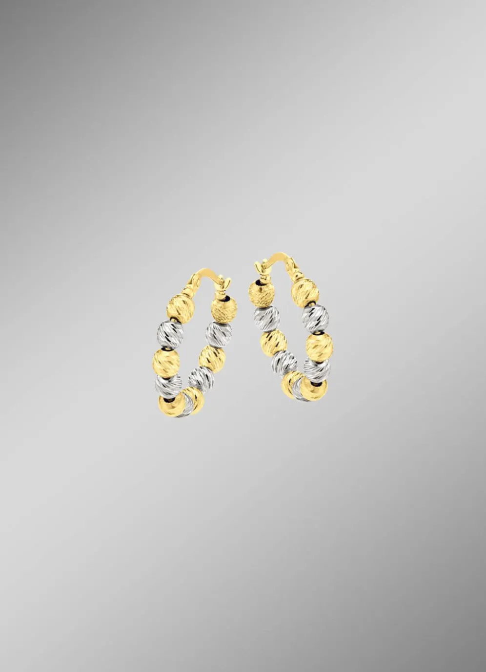 Diese stilvollen Creolen aus Gold 375/- fein vereinen klassische Eleganz mit modernem Design. Der edle Bicolor-Look und die diamantierte Oberfläche sorgen für ein faszinierendes Spiel aus Glanz und Struktur – ein echter Hingucker bei jedem Licht. Mit einem Durchmesser von 21 mm und einer Breite von 4 mm bieten sie eine ausgewogene Größe, die sowohl im Alltag als auch zu besonderen Anlässen überzeugt.