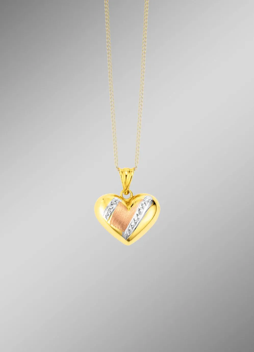 Diamantierter Herz-Anhänger in Tricolor
