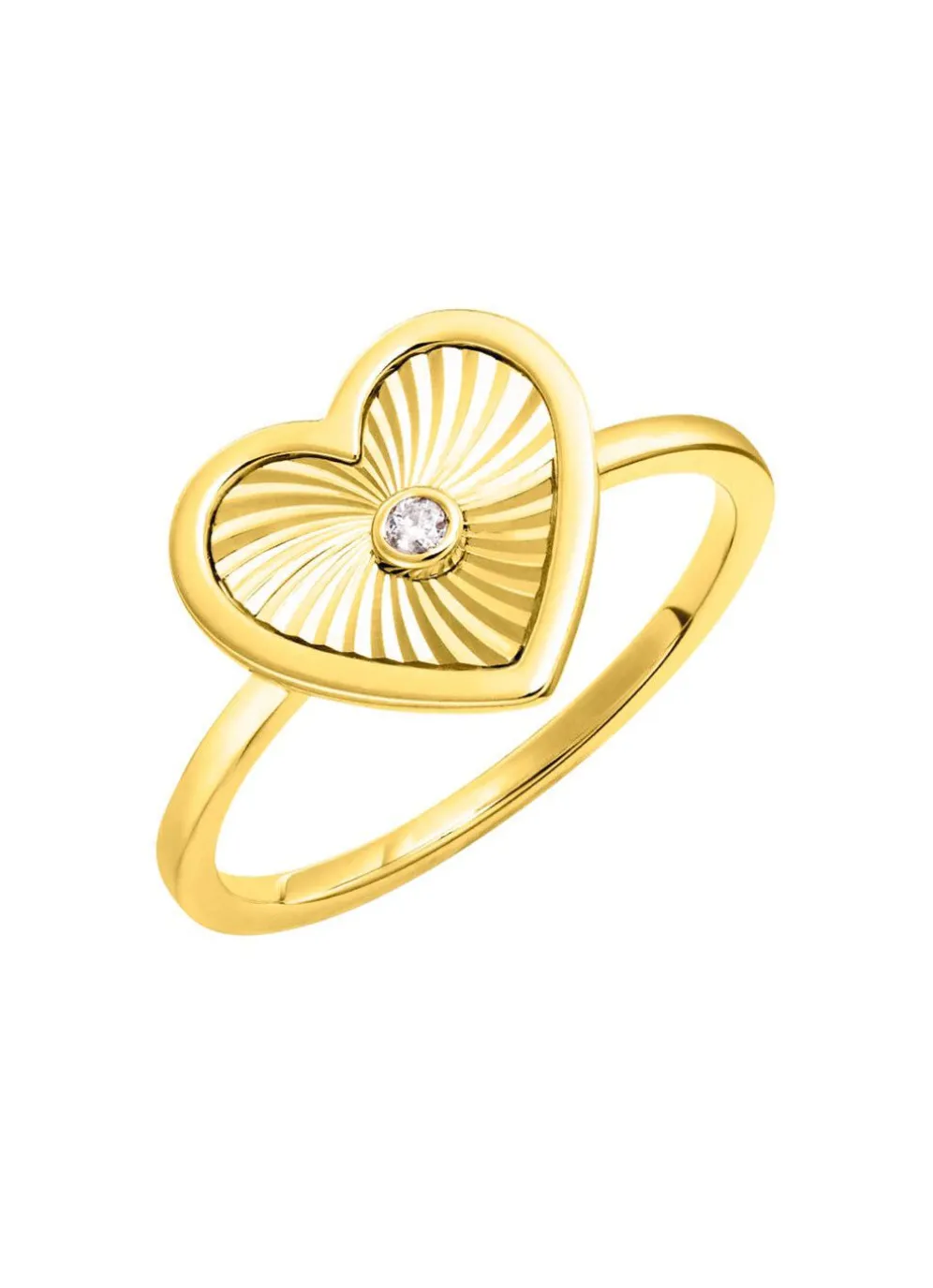 Ein Herz, das für Stil und Gefühl schlägt – dieser Damenring aus feinem 375/- Gold vereint romantisches Design mit edler Ausstrahlung. Der herzförmige Ringkopf misst 11 x 12 mm und ist kunstvoll diamantiert, wodurch ein faszinierendes Spiel aus Licht und Struktur entsteht. Im Zentrum funkelt ein weißer Brillant mit der Reinheit Piqué 2 – ein echter Blickfang, der dem Ring eine besondere Tiefe und Eleganz verleiht.