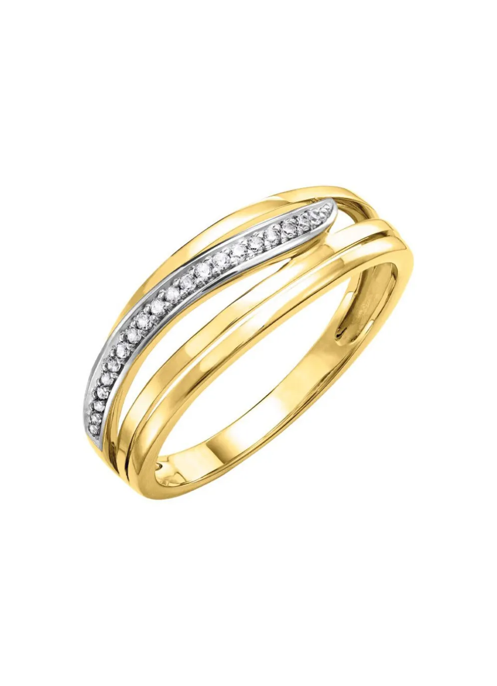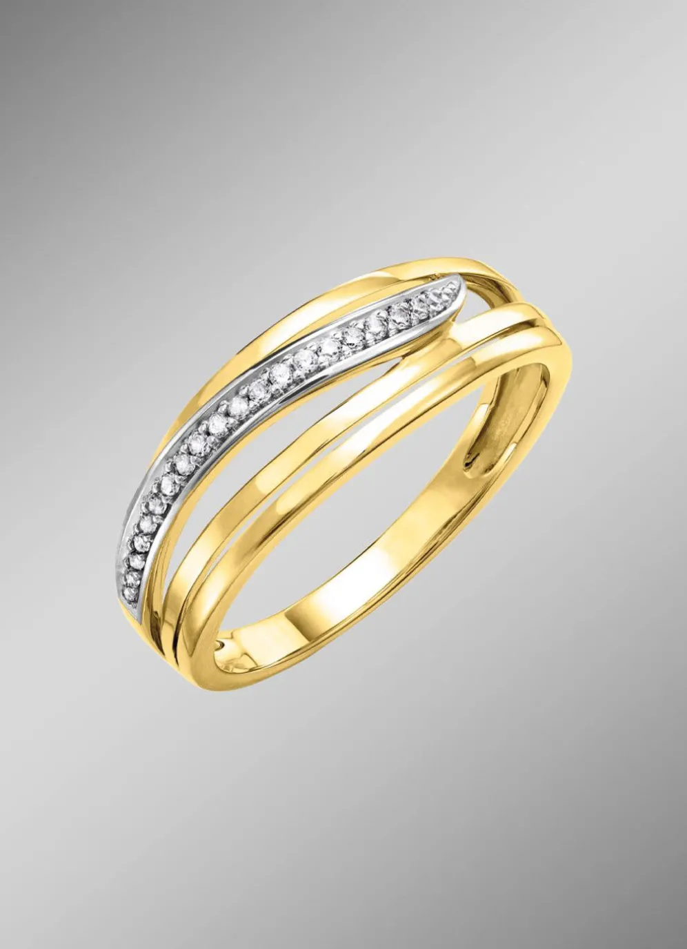 aus hochwertigem Gold 375/- fein, verzaubert mit 20 strahlenden Brillanten (zusammen ca. 0,085 ct.). Die funkelnden Steine in Weiß/Piqué 2 setzen glanzvolle Akzente und verleihen dem Ring eine zeitlose Schönheit. Mit einer Ringkopfbreite von 6 mm ist dieses Schmuckstück ein stilvoller Begleiter für besondere Momente. Ein Hauch von Luxus für die moderne Frau.
