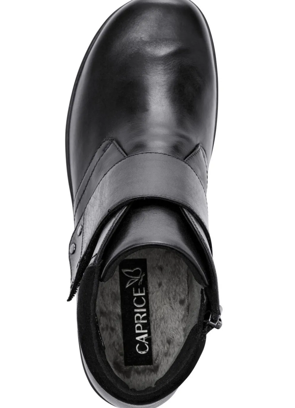 Wetterfeste Boots von ELENA EDEN aus Rind-Nappaleder mit Nubukbesatz: Weite H, mit Klimamembrane ausgestattet, seitlicher Reißverschluss und nietenbesetzte, verstellbare Klettspange mit verdecktem Gummizug, Textilfutter, gepolsterte Decksohle, leichte TPR-Profilsohle sowie 20 mm Keilabsatz