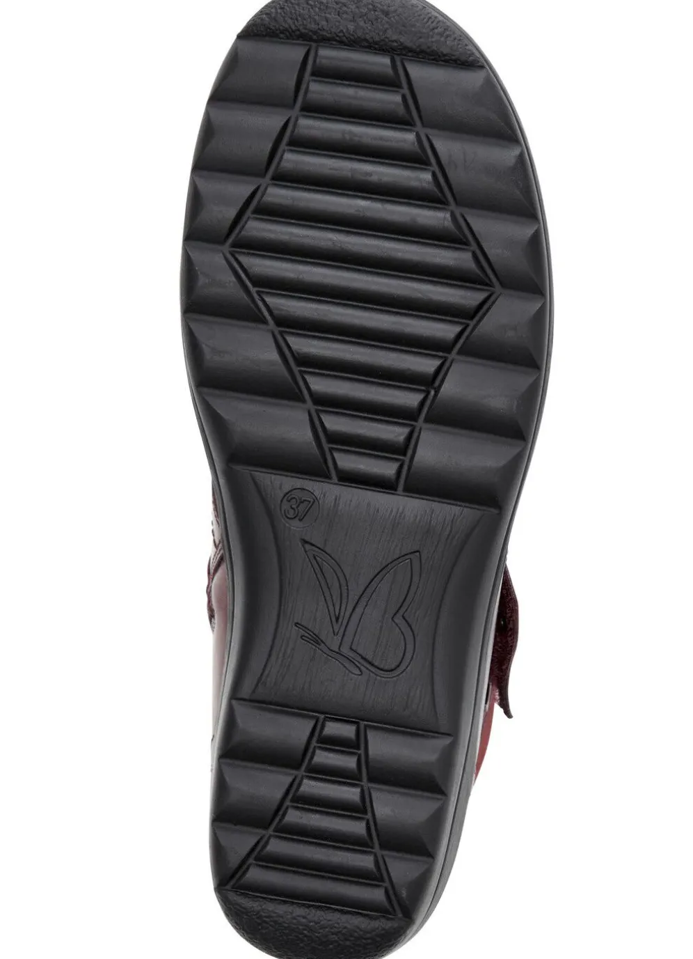 Wetterfeste Boots von ELENA EDEN aus Rind-Nappaleder mit Nubukbesatz: Weite H, mit Klimamembrane ausgestattet, seitlicher Reißverschluss und nietenbesetzte, verstellbare Klettspange mit verdecktem Gummizug, Textilfutter, gepolsterte Decksohle, leichte TPR-Profilsohle sowie 20 mm Keilabsatz